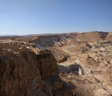 Drive through the Judean desert to the dead sea. Stop at Qumeran , the site where the dead sea scrolls were found. Continue to Massada, ascend by cable car and tour the ancient fortress; visit the remains of the walls, palaces, synagogue, the bathhouses etc.